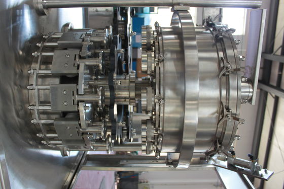 Butelka wysłana do maszyny przez przenośnik taśmowy podzielona na ustalony okres w maszynie za pomocą koła gwiazdowego, klips na butelkę obróci butelkę i wykończy pralkę, a następnie wyśle do koła gwiazdowego maszyny do napełniania butelek. Butelka znajdzie się w zaworze napełniania poniżej poprzez ruch wznoszenia urządzenia. W procesie obrotowym butelki przechodzą dwie procedury przygotowania podciśnienia i CO2, a następnie są w trakcie napełniania.